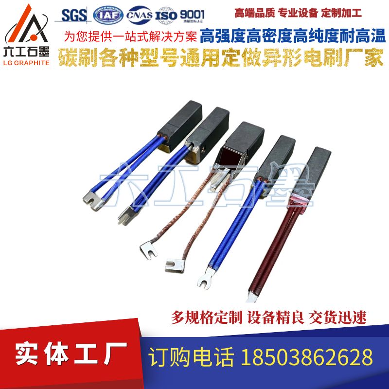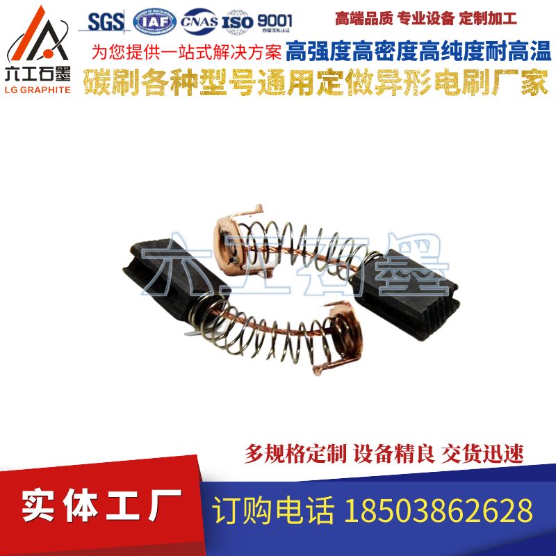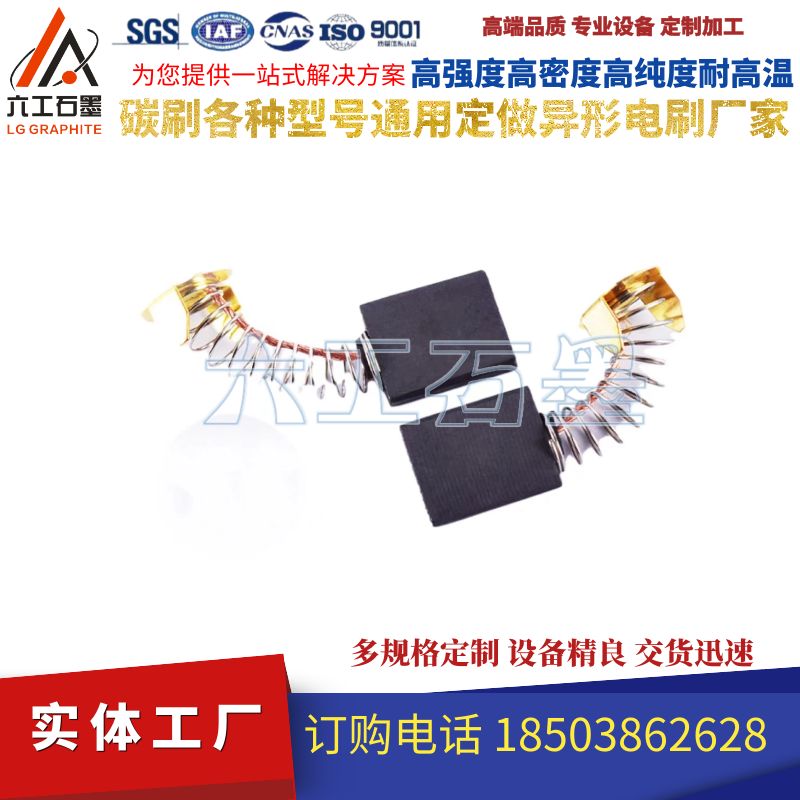 碳刷也叫電刷,作為一種滑動(dòng)接觸件,在許多電氣設(shè)備中得到廣泛的應(yīng)用。碳刷在產(chǎn)品應(yīng)用材質(zhì)主要有石墨,浸脂石墨,金屬(含銅,銀)石墨。碳刷是電動(dòng)機(jī)或發(fā)電機(jī)或其他旋轉(zhuǎn)機(jī)械的固定部分和轉(zhuǎn)動(dòng)部分之間傳遞能量或信號(hào)的裝置,它一般是純碳加凝固劑制成,外型一般是方塊,卡在金屬支架上,里面有彈簧把它緊壓在轉(zhuǎn)軸上,電機(jī)轉(zhuǎn)動(dòng)的時(shí)候,將電能通過換相器輸送給線圈,由于其主要成分是碳,稱為碳刷,它是易磨損的。應(yīng)定期維護(hù)更換,并清理積碳。碳刷的樣子有點(diǎn)像擦鉛筆的橡皮條那樣,頂上有導(dǎo)線引出。體積有大有小。碳刷作為一種滑動(dòng)接觸件,在許多電氣設(shè)備中得到廣泛的應(yīng)用。產(chǎn)品材質(zhì)主要有電化石墨,浸脂石墨,金屬(含銅,銀)石墨。